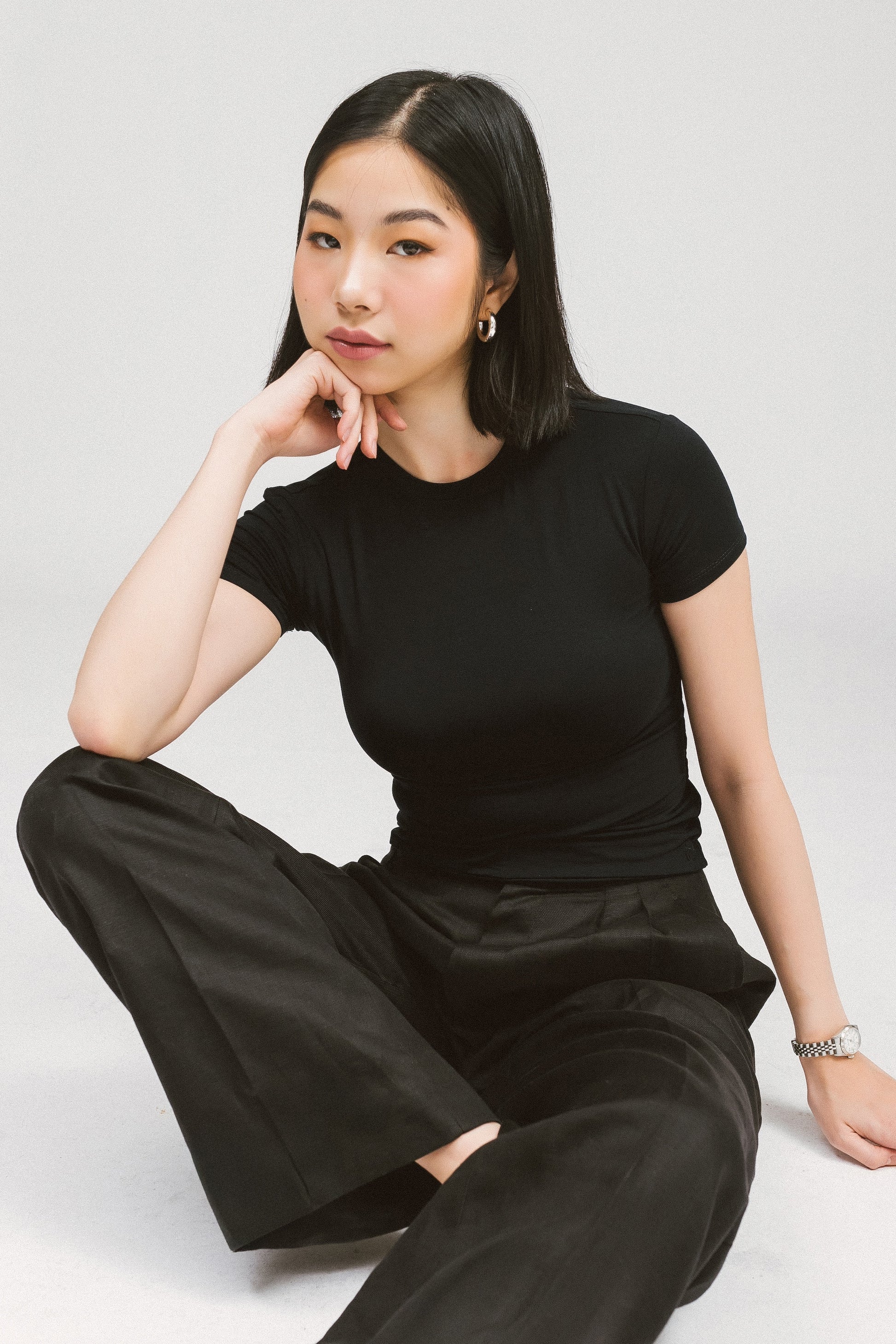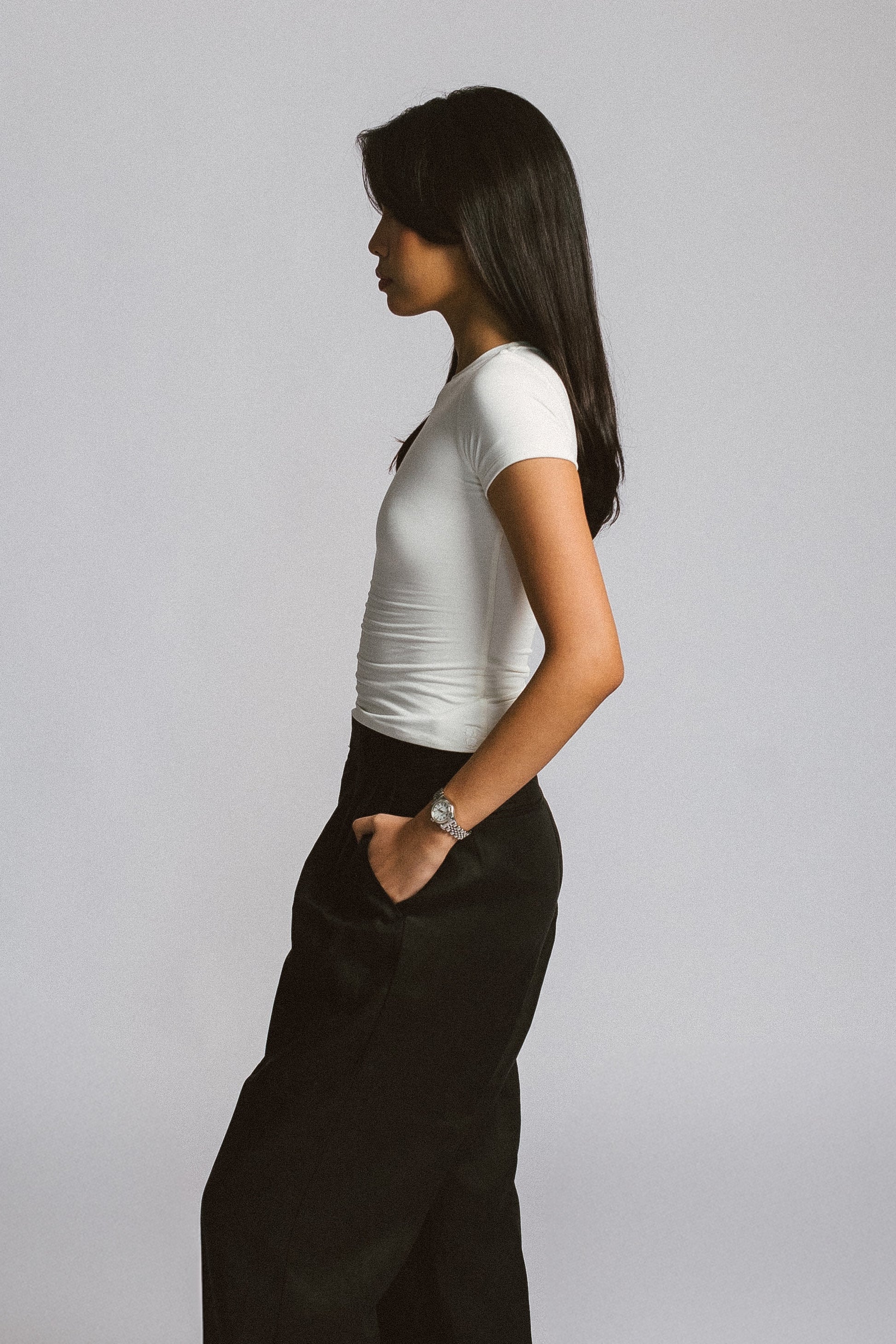 The ultimate wardrobe essential. With its crew neckline, cap sleeves, and body-hugging fit, this elevated Fitted Tee will surely be your most worn item. Crafted from premium modal fabric, it offers a luxuriously soft feel against your skin.